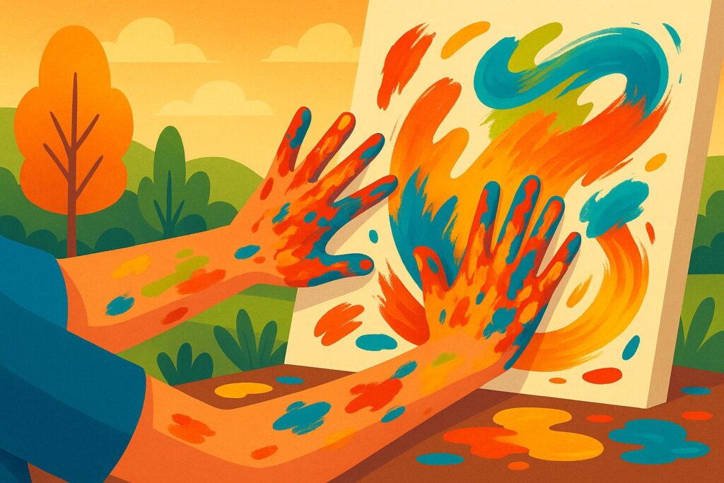 این کار باعث فعال‌سازی نیم‌کره راست مغز می‌شود؛ بخشی که مسئول احساس، خلاقیت و درک غیرکلامی است. لمس مستقیم رنگ، بازی با بافت آن و آزادی در انتخاب رنگ‌ها، به‌صورت ناخودآگاه، امکان تخلیه هیجانی و کاهش تنش روانی را فراهم می‌آورد.