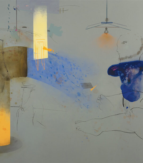 این بدنها حاصل مواجهۀ غیرمستقیماند؛ جاییکه نقاش با پرهیز آگاهانه از نگاه مستقیم و با کمک «عنصر تصادف» در طراحی تکخطی، در فرآیند شکلگیری، کیفیتی سیال و ناپایا به هستی آنها میبخشد و وضعیتشان را از «بودن» به «شدن» سوق میدهد. در این میان، رنگها در بستر خاکستریهای رنگی، جان سطوح را پالایشداده و آبدیده میکنند؛ لکهها گاه همچون حضوری ناگهانی و پیشبینیناپذیر بر سطح ظاهر میشوند و گاه در همنشینی با خطوطی ریتمیک، ریز و ممتد، به شکلگیری قلمرویی صمیمیتر و دروننگر میانجامند.