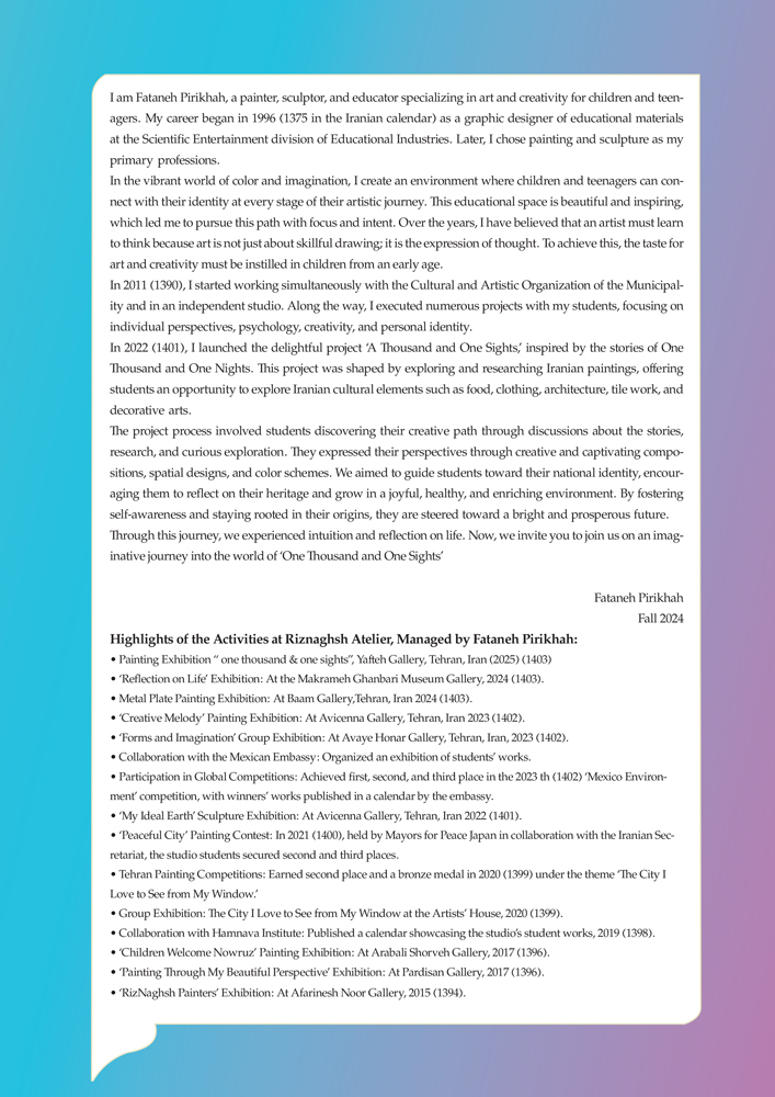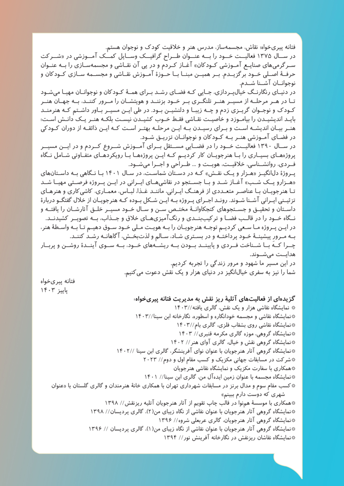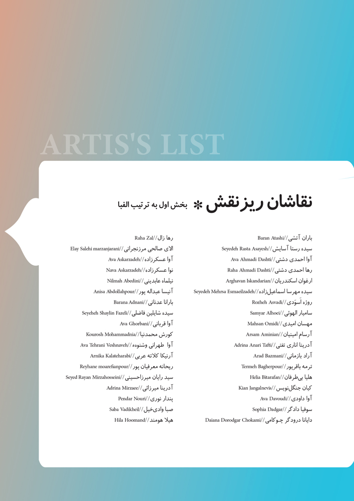 - تصویرگران: هنرجویان آتلیه هنری ریز نقش